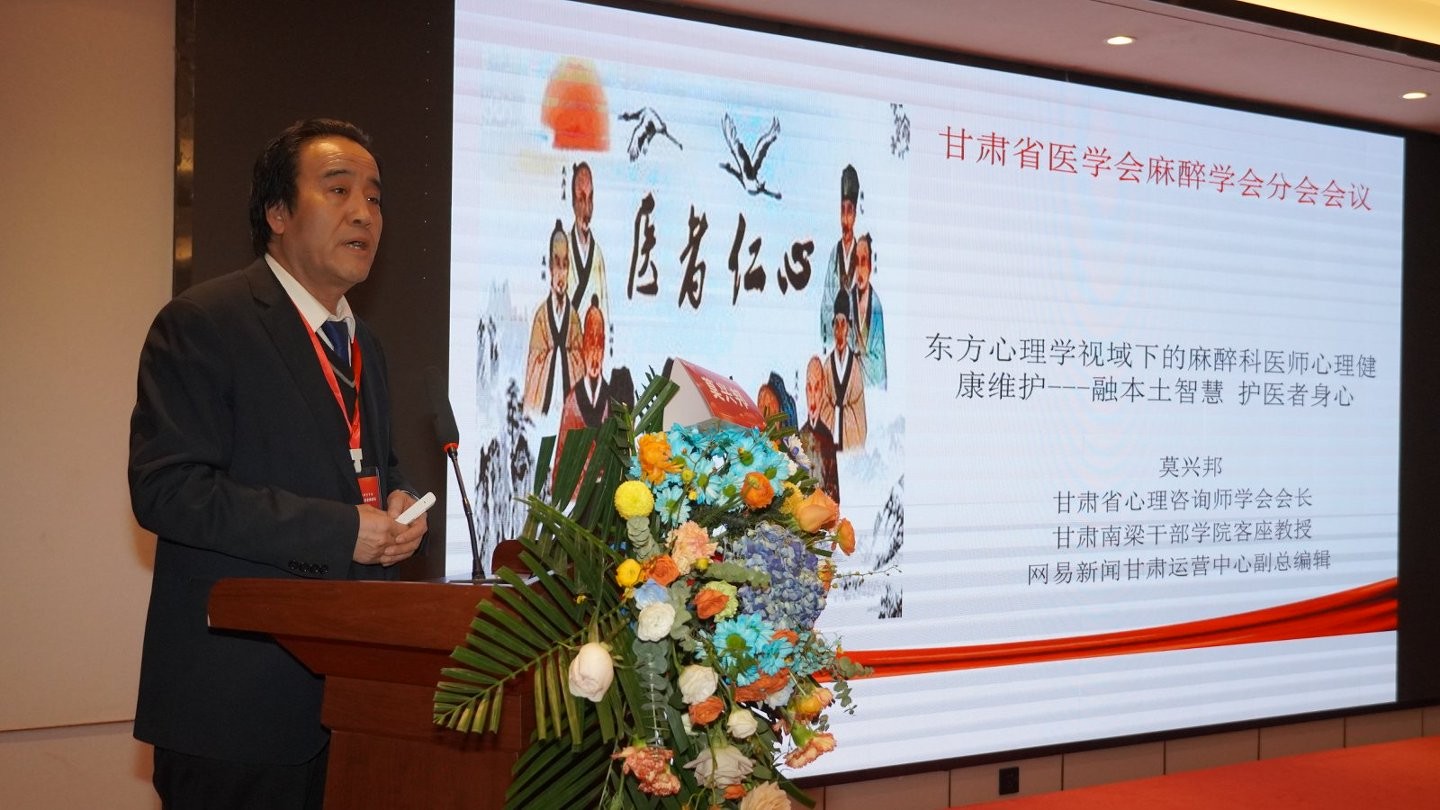 甘肃省心理咨询师学会会长莫兴邦教授受邀作《东方心理学视域下的麻醉科医师心理健康维护---融本土智慧 护医者身心》主题报告,为麻醉医师身心防护注入本土智慧。