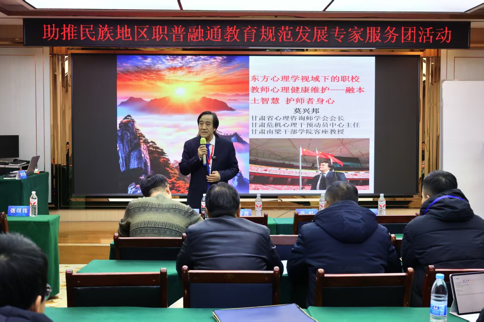 教育的温度源于人文关怀的深度。甘肃省心理咨询师学会会长、心理学博士莫兴邦教授带来的 “东方心理学视域下的职校教师心理健康维护--- 融本土智慧 护师者身心” 专题讲座,成为活动一大亮点。莫教授深入剖析职业院校教师职业倦怠、认知焦虑等心理困扰,分享 “观情绪而不陷情绪” 等实用调适方法,现场互动热烈。针对民族地区学生专业选择焦虑、就业犹豫观望等问题,专家团队提出科学引导思路,既为教师身心健康筑牢防线,也为学生成长成才保驾护航,彰显了教育的人文温度与责任担当。