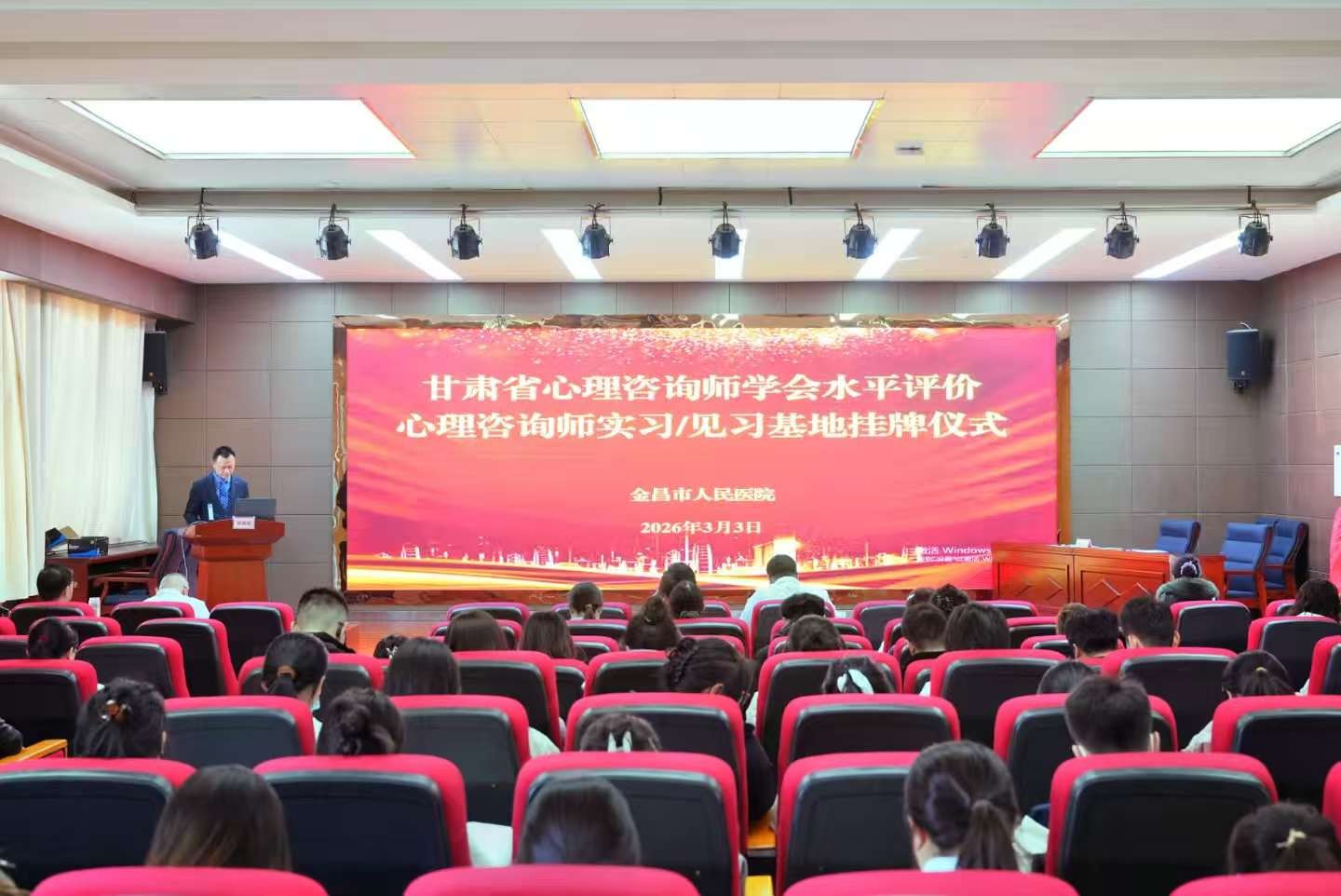 金昌市人民医院睡眠医学中心主任、金昌市社会心理学会会长、省心理咨询师学会心理咨询师水平评价理论与实务课程教师杨春斌副主任医师主持仪式,全院各科室200余名医护人员、学会会员齐聚一堂,共同见证这一关乎全省心理咨询行业规范化发展、惠及千家万户心灵健康的重要时刻。